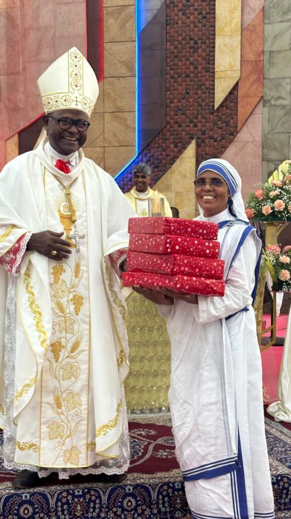 Msgr. Sebastian Vas, Msgr. Joseph Roy OFM Cap, and Rev. Dr. Roy B. Simson were the concelebrants.As part of the Jubilee celebrations, clothes were distributed to the needy and study materials were given to schoolchildren.Msgr. Sebastian Vas, Rev. Fr. Ajeesh Cletus, Rev. Fr. Justin Zacharia, Rev. Fr. Shinto, Sister Lancine SRA, Rev. Dr. Ajit Kumar K. C., Rev. Dr. Christy Joseph, and Rev. Fr. Colin Napoleon coordinated the arrangements.Priests, Sisters, members of the Diocesan Pastoral Council, the Secretary and Treasurer, BEC coordinators from various parishes, and representatives of lay organizations and pious associations of the Diocese participated in the celebration of the Holy Eucharist.